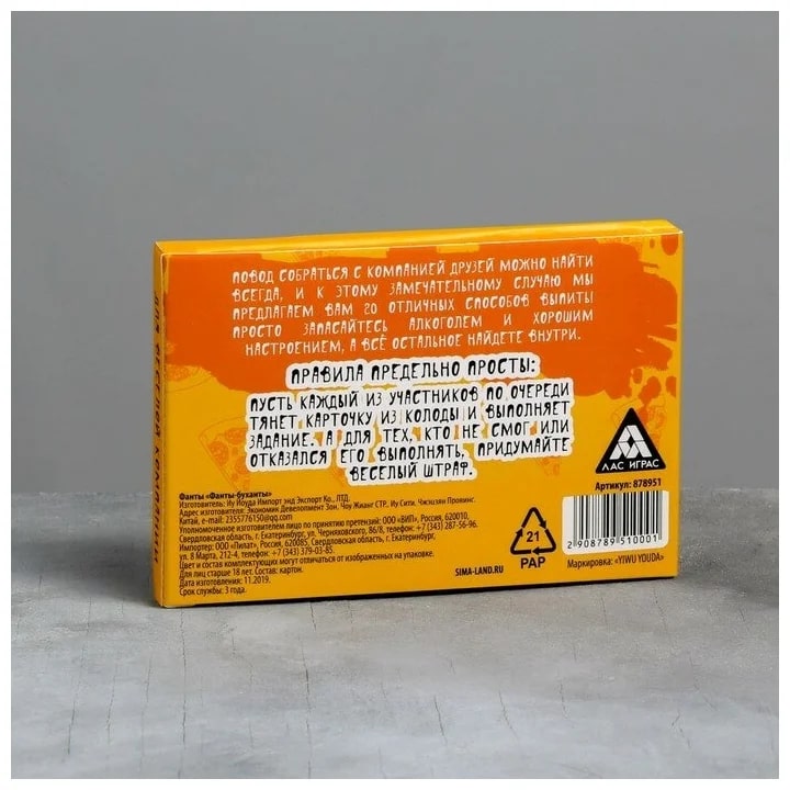 Купить игра для компании "фанты буханты" 20 карт от 100 руб. с доставкой до пункта выдачи в Мегионе. Интернет магазин ДекаМаркет. Оплата при получении.